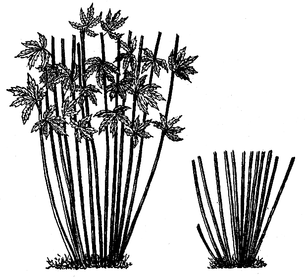 Срезать цветы необходимо с таким расчетом, чтобы на кусте оставалась часть побега с листьями (рис. 63). Низкая срезка, под корень, лишает растение ассимиляционного аппарата, сильно его ослабляет. Правильной считается такая срезка, когда на оставшейся нижней части куста сохраняется, как необходимый минимум, часть здоровых листьев: у тюльпанов 1—2, у лилии 6—18, у пиона 2—3, у флокса 5—6 пар. Это обеспечит нормальные условия накопления питательных веществ и закладывания цветочных почек для следующего года, а также рост и развитие растения. Особенно страдают при неправильной срезке пионы, гладиолусы, тюльпаны, шпорники, лилии, флоксы, так как они не образуют прикорневой розетки листьев.