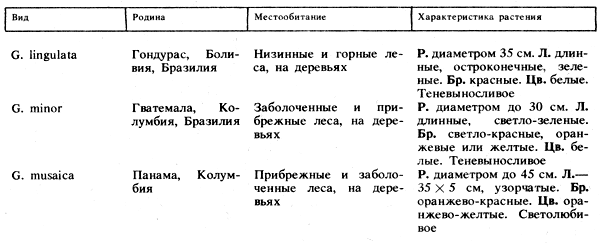 Таблица 18. Род гузмания. Характеристики видов и местообитаний