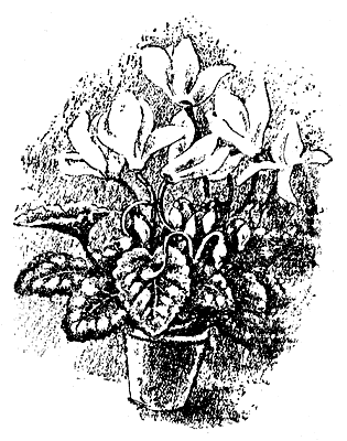 В наших комнатах поздней осенью и зимой можно увидеть близких родственников примул - прекрасные цветы с пестрыми овальными или сердцевидными листьями на розовых длинных черешках, выходящих из клубневидного круглого корневища. Цветы большие, красивые, но странные: они наклонены вниз, но лепестки резко отогнуты назад и торчат кверху.
