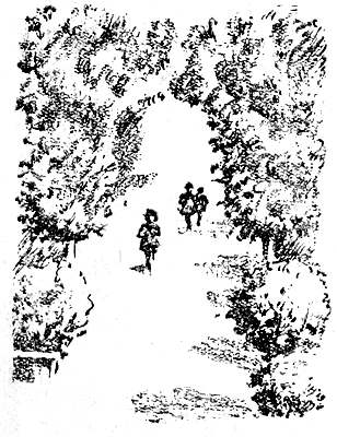 Вдоль аллей тянулись зеленые кубы подрезанных деревьев с нишами, в которых стояли статуи.