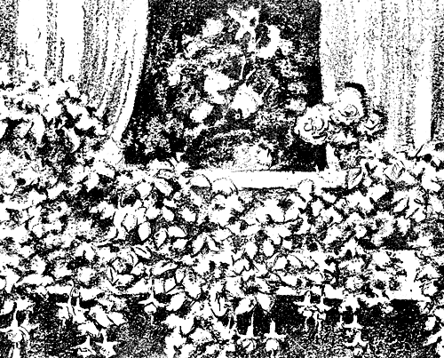 Натяните наискось от горшка к стенкам две веревочки в разные стороны и привяжите к ним две ветки фуксии. Если у вас две фуксии, то можно срастить прививкой, сближением, две их ветки. На окне получится гирлянда из тонких веток, покрытых свисающими цветами.